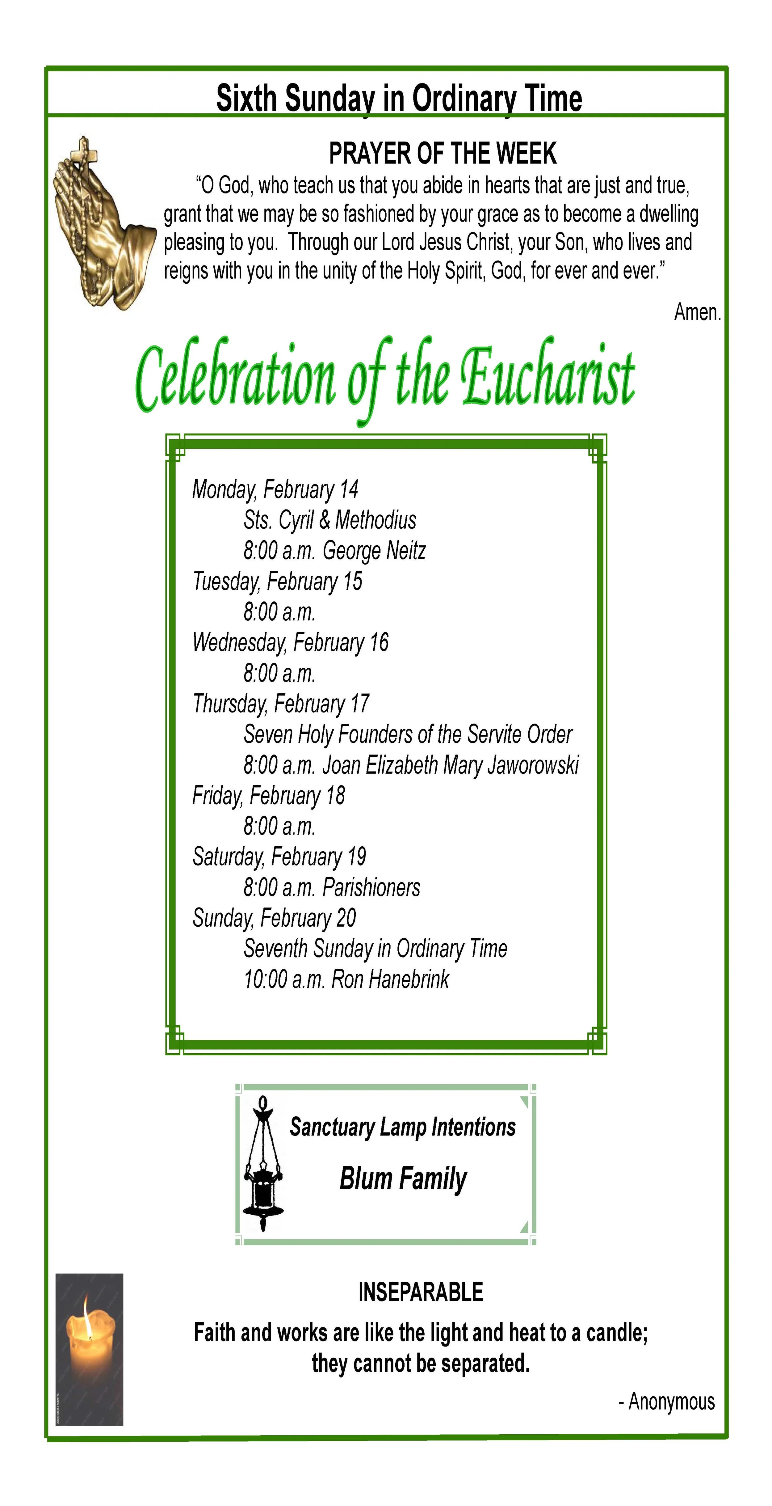 Bulletin Insert for the Sixth Sunday in Ordinary Time, February 13, 2022, Page 1