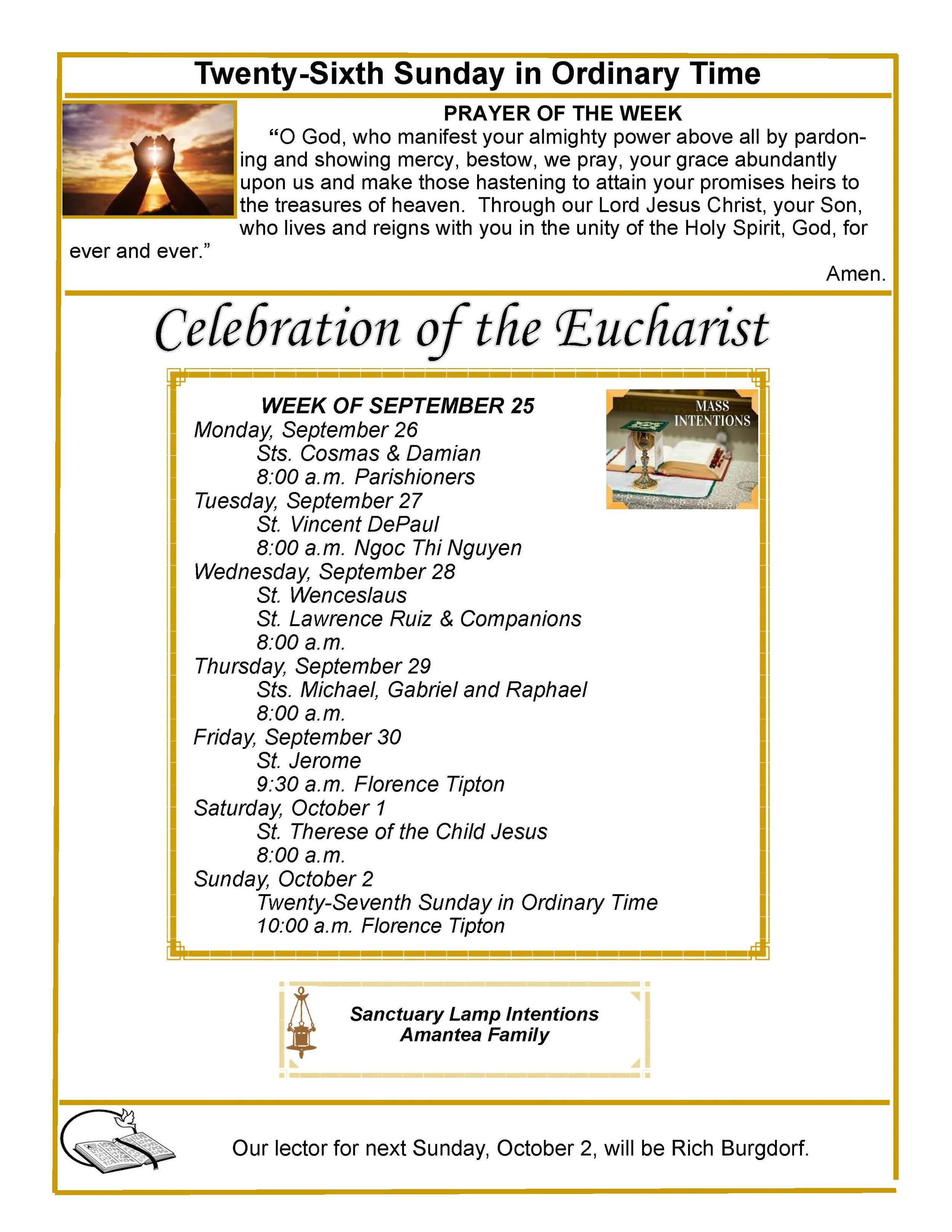 Twenty-Sixth Sunday in Ordinary Time, September 25, 2022, Bulletin Insert Page 1